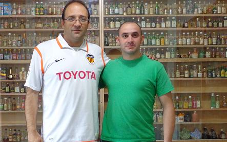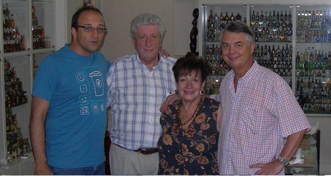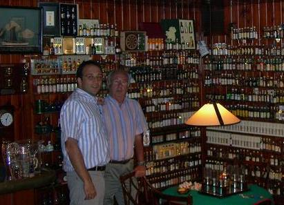 En el restaurante Blue Moon con Luis Constantini y su esposa jeny, Jorge Alzate, Luis Campos, Santi Baletta (el propietario del restaurante) y Manuel Liceti. allí encontramos una preciosa colección de minis y botellas grandes