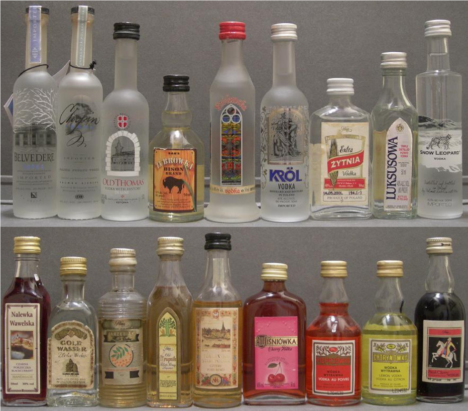 En este país de Europa central encontramos miniaturas típicas como el vodka (baltic special, belvedere, columbus, cytrynowka wodka wytrawn, chopin, jarzebiak, krakus, kröl, krolewska, luksusowa, OJRA polmos kosher, pieprzowka, polska wodka 3, pravda, snow leopard, sobieski jan III, szambelan, wyborowa, zubrówka bison brand, zytnia extra), wisniowka cherry cordial (de cereza), brandy de mora bak´s jezynowka, wisniak polish cherry (de cereza), honey magic (de miel), wavel (de miel), old krupnik (de miel), gold wasser zlota woda (de oro). y nalewka.