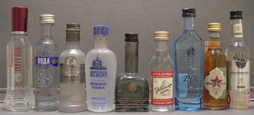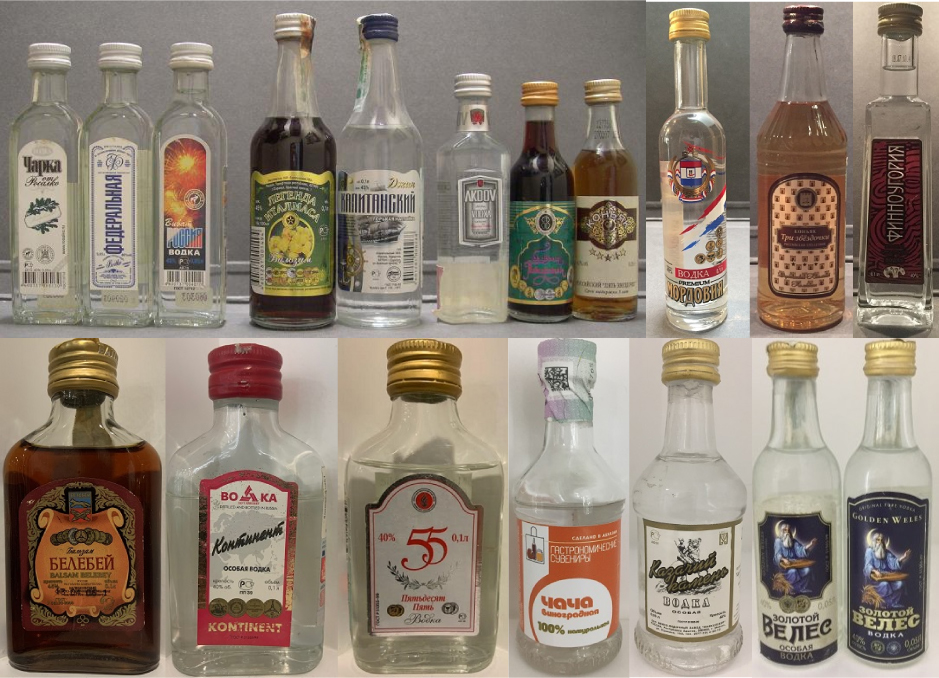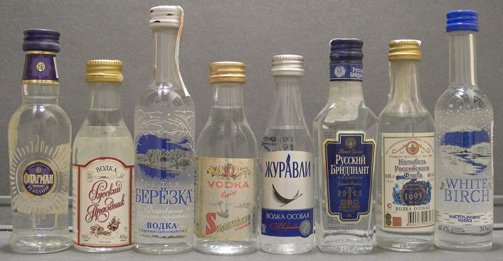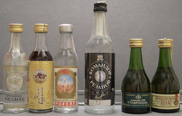 Reconocido por su tradición licorera, está representada en la colección con miniaturas de diversas bebidas. Entre ellas brandy de albaricoque (DOMawHRR UCM OPUR), bálsam (Baah3an, Netehda Ntanmaka Balozam) y coñac (Ctabprononb, Ctabprononb Bo3acm 6 Nem, Kohnrk *****, KomahdnpcKnN 4, Kyty3ob Poccuúckuú). La bebida típica es el vodka, con marcas como Akdov Original, Benar Bere3ka, Bnhat Boaka, BopohEkk Bodka Ocobar, Bopohexcknn Konbigenb 1695, Bubam PoccNr Vivat, Byty, Cristall, CtaHdapT Pycckhn Ruskky Estándar, Diplomat, Finka Premium Doublyou, Gpi-Oca Ai-Oks Rpny Bogka, Imperial, Jewell of Rusia, Ka3ahckaR Bodka Ocobar, KannTahcknn Topbkar Hactonka, Kem4yXknha Ka3ahn, Komahdop Pe3ahob Bogka, Kremlyovskaya, Kypabnn, Legend of Kremlin, Nepuobka Topbkar, PocohbckaR, Federalnaya, Onapmah Flagship, Pycckhn Bphnnhaht Diamond, Pycckhn Pa3mep, Rodnik, Rpny Boaka Kpenoctl, Ruskova, Samareskaya, Smirnoff, Sputnik Basil, Stoli, Stolichnaya, Tambobckhn Boak, TepHobar Bodka Ocobar, White Birch, Khanskaya Premium 1437, Yapka Om Pocaiko (Tcharka), Youri Dolgoruki, Yubi Yubiley y Zyr Ultra Smooth. La colección también incluye miniaturas procedentes de las repúblicas de Chuvashia, Udmurtia, Tatarstán, Mordovia, Daguestán, Komi, Adygea, Kabardino-Balkaria, Abjasia, Bashkortostán, Osetia del Norte-Alania y Mari El.