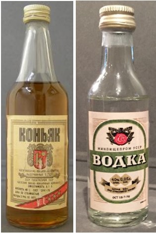 1922–1991(Antiguo territorio) este antiguo territorio que se partió en 15 republicas esta representado por miniaturas de cognac KOHbRK *** y vodka (russkaya, stolichnaya, moskovskaya, kubanskaya, stolichnaya limonnaya, stolichnaya pertsovka sovetskaya, starka old, relska 1721 eau de vie, ockhtnichya hunters) de destilerias como vao sojuzplodoimport y relsky.