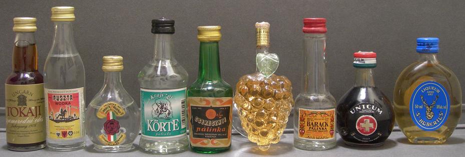 Hungary. Este país esta representado por aguardientes y licores típicos como: los brandy de frutas (durazno, cereza, pera) conocidos como palinka (barack palinka vallalat tiszakecke, barack palinka pecsetes budapest likoripari vallalat, hungaria barack palinka fogy hungria, cseresznye palinka kisvardai szeszipari, korte palinka vialko ktf gyor, parlat futyulos tiszta barack kecskemeti ), slivovitz braun´s plum brandy, el vino tokaji (tokaji furmint, tokaji szamordni edes) en botellas de vidrio hermosas, el vodka (iceland aromavál izesitett, puszta) y los licores de hierbas típicos producidos por la casa zwack unicum (unicum , st hubertus).