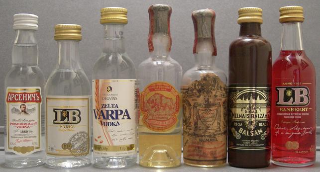 En esta republica perteneciente a los países bálticos encontramos como bebida típica un licor de hierbas conocido como el rigas melnais balsam y como todos los países bálticos el vodka (LB latvijas balzams, varpa zelta). Este país declaro su independencia en 1918 hasta que en 1940 paso a ser parte de las republicas socialistas soviéticas, y en 1991 logro su independencia nuevamente, por ello este país esta representado en la colección con miniaturas de cada uno de estos periodos vemos las descritas anteriormente en el periodo actual, es decir desde 1991 hasta la fecha, en el otro cuadro podemos ver dos miniaturas muy conocidas en los licores clásicos del mundo producidos por la casa wolfschmidt, ellos son el famoso kummel de riga y el vodka zubrovka en botellas producidas según la etiqueta en 1936 y 1937 respectivamente. las botellas de Letonia soviética se ven al final de esta pagina.