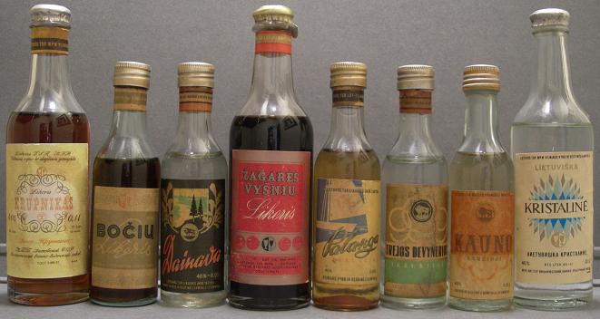 (Lietuvos TSR) 1940–1991 (Antiguo Territorio) , este antiguo territorio esta representado por las miniaturas de bitter o trauktine (dainava, kauno karcioji lietuvos, palanga TIAnAHTA, trejos devynerios), licor de cereza zagares vysniu likeris, licor de cerveza bociu likeris, licor de miel krupnikas likeris y vodka kristaline lietuviska ANETYBNWKA KPNCTAnNHE.