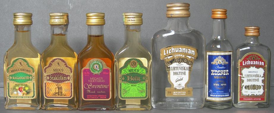 este país báltico que obtuvo su independencia en 1990 esta representado por miniaturas típicas como es la bebida nacional, un licor de miel denominado midaus (sventine midaus nektaras, bociu, stakliskes, raganaite ), y los vodkas (lithuanian lietuviska degtine gold y lietuviska degtine originali), en este país el vodka es conocido como degtine.
