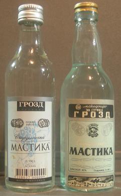 La bebida típica de macedonia es el licor anisado conocido como mastica o mastika con su marca(TPO3D MACTHKA). en la foto vemos la miniaturas de Macedonia y de la Macedonia yugosslava.