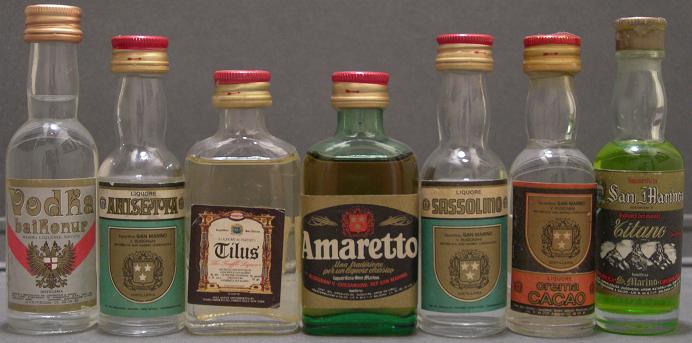 De este país encontramos las miniaturas de amaretto, anisetta, sassolino , gitano liquore del monte y crema cacao, el liquore tilus the truffle al tartufo (licor del hongo trufa), siendo este ultimo el mas típico de este país. todos ellos de las destilerías susignani, liquorificio san marino y busignani v chesanuova.