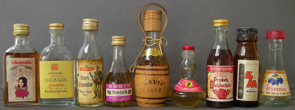 1918 – 2003 (Antiguo territorio) este antiguo territorio que se partió en 7 republicas esta representado por miniaturas de brandy (cezar badel vinjak, istra domaci, stari vinjak navip, trenk vsop vinjak, CUHhenUh BNHAK ***), rakija (lincura, ljuta dzervin sljivovica, lozovaca dalmacijavino, stomaklija prokupac rakija travarica, travarica dalmatinska specijalna, excellentia sapcanka pozegace, slivovica, stara sljivovica old plum), mastika 4 M prirodna vino prosek dioklecijan, licor de hierbas badel stari granicar pravi biljni liker.
